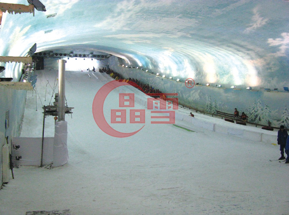 深圳世界之窗阿爾卑斯山室內滑雪場,主體建筑面積4300m2,其中滑雪場面積3200m2,服務區(qū)面積800m2,設備區(qū)面積300m2。主滑道寬24m、長114m、高差12m;兒童滑道長20m、高差4.5m ; 2000年7月正式對外開放,是當年國內最大的室內滑雪場。